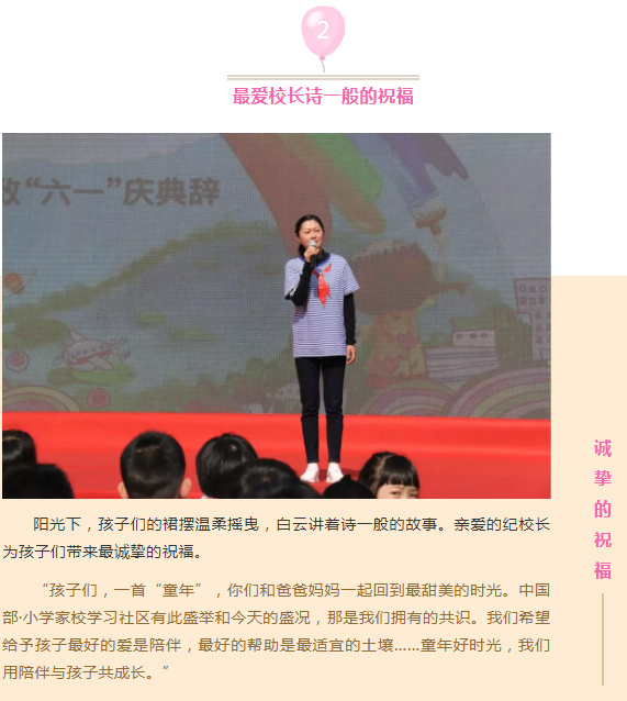 19個中隊各展風采,帶著小朋友們對童年的期許,牽著大朋友對童年的回憶,共同感受著一場充滿童真、童趣和童畫的饕餮盛宴——中國部·小學歡慶六一主會場。